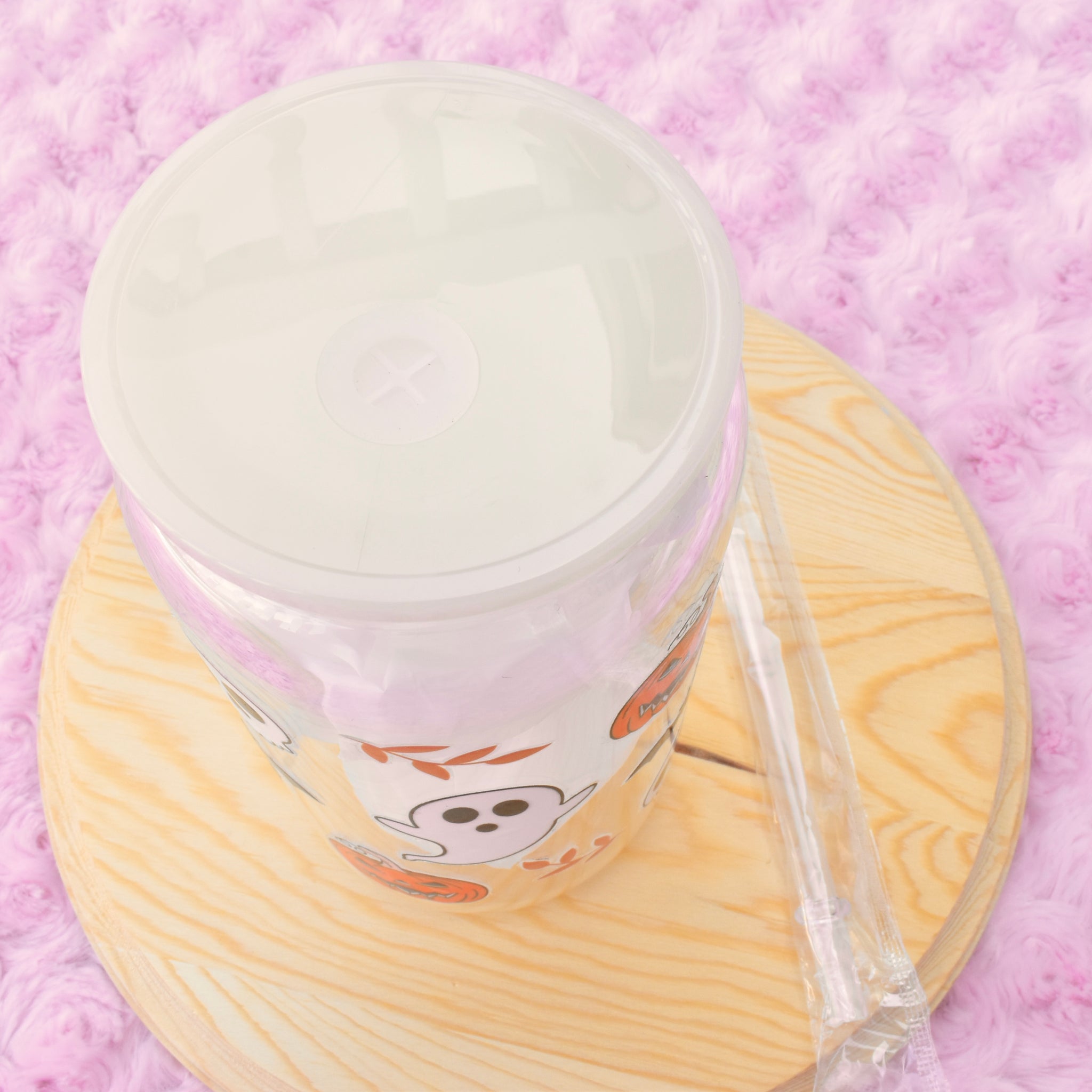 • 16oz Glass cup. Comes with plastic lid & 1 plastic straw.